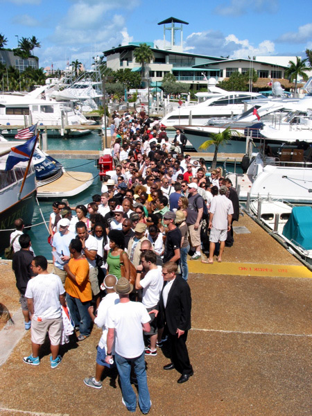 Party people waiting to get on the yacht party with MAW |